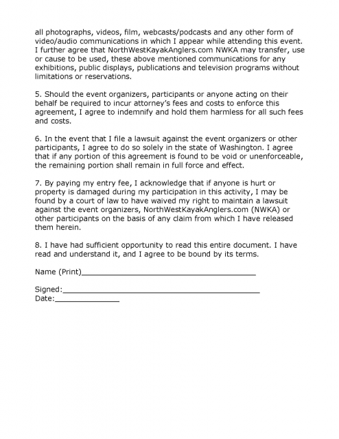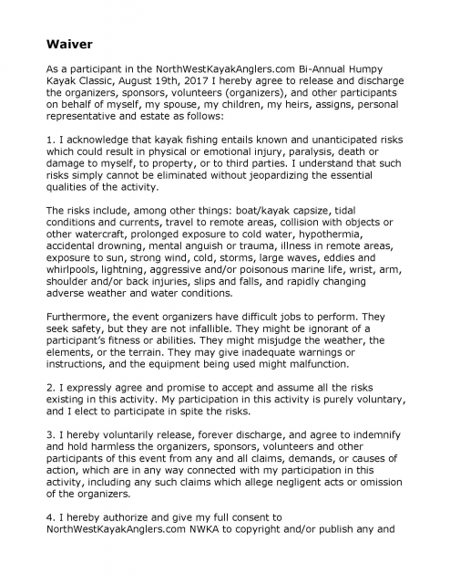 - FILL OUT AND SIGN A WAIVER BEFORE HITTING THE WATER! If you haven't signed a waiver, you're NOT competing.