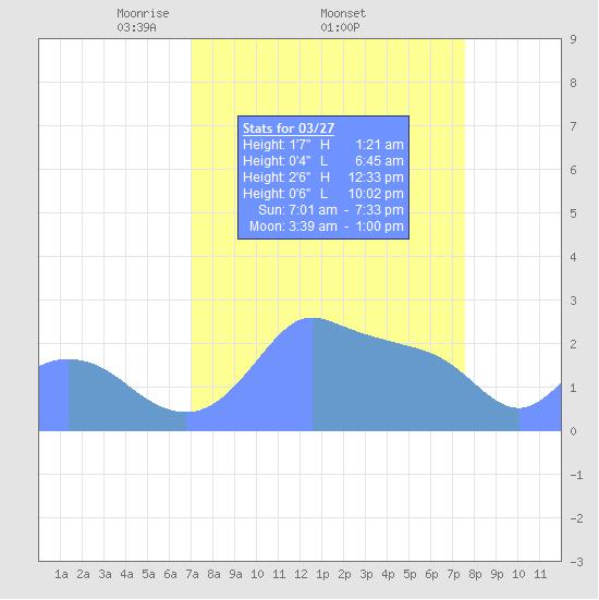 The tide is looking really good for trolling Sunday.  The low is shortly before sunrise and will be coming in until 12:30PM or so.  The falling tide will be gradual so you'll be able to continue trolling as late as you please without having to fight a heavy flow.