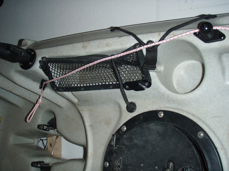 This may seem too complicated but after I tied it a few times it became really easy and it will not slip.  It is also easier to do while in a Hobie since you can hold your position and use your hands, but I was able to do this while in my old X-Factor so it can be done in a paddle kayak.